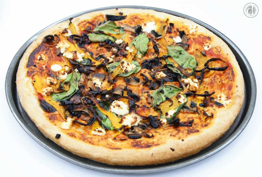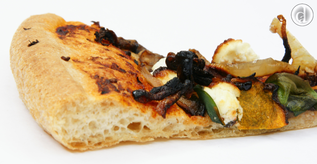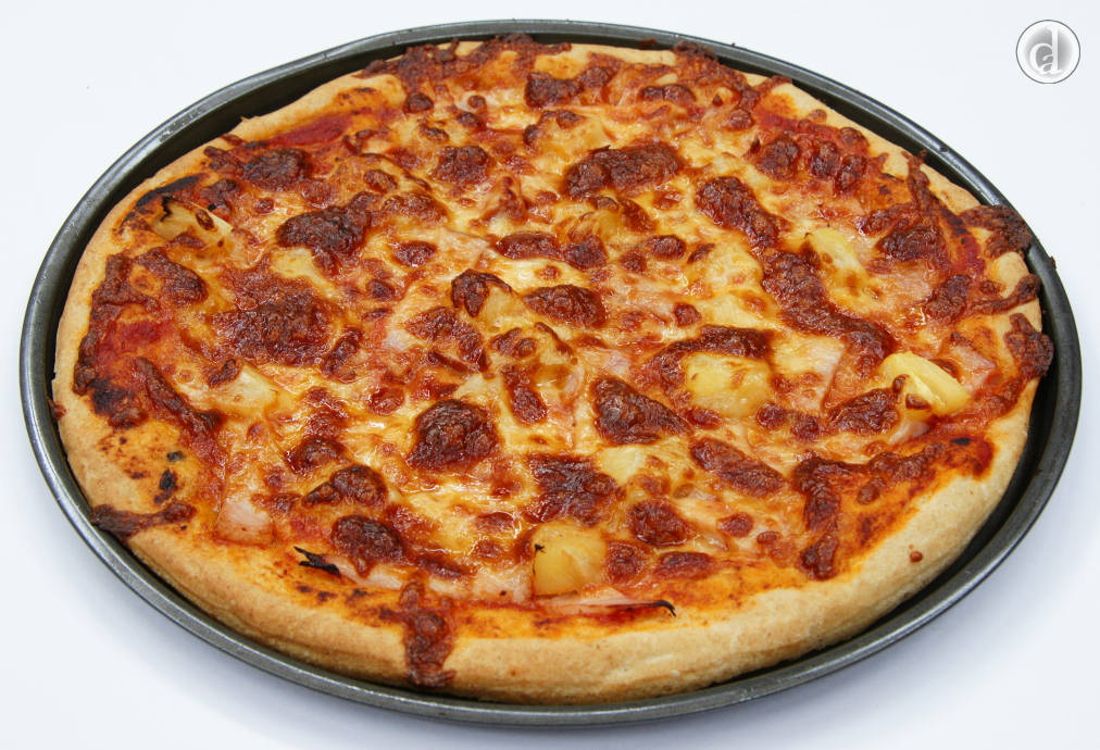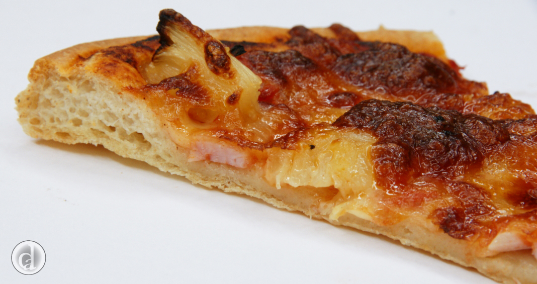 During baking the dough shrinks a little from the sides however it is easy to remove the pizza from the pan. If left in the pan for too long it may stick a little. The following photos are of side views of the pizzas shown above.