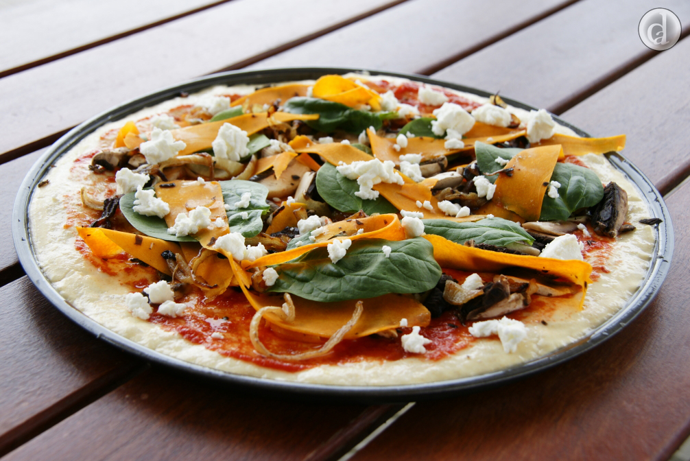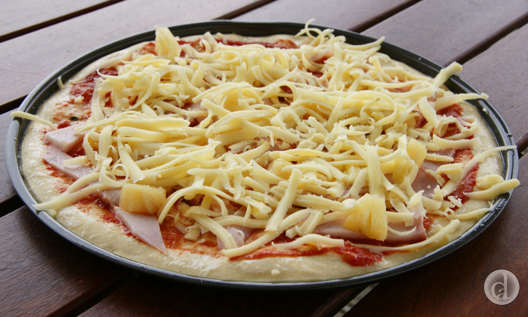 Now comes the fun part of gently putting on the toppings. I say gently because you don't want to deflate the dough too much. If you put too much topping on or the toppings are too wet the dough will be doughy after it is cooked. The following photos are some of my pizzas (pre & post baking) with a "dry" topping (mushrooms, shaved pumpkin, spinach leaves, caramelised onion & goats chevre) & a "wet" topping (plenty of mozzarella, ham & pineapple).