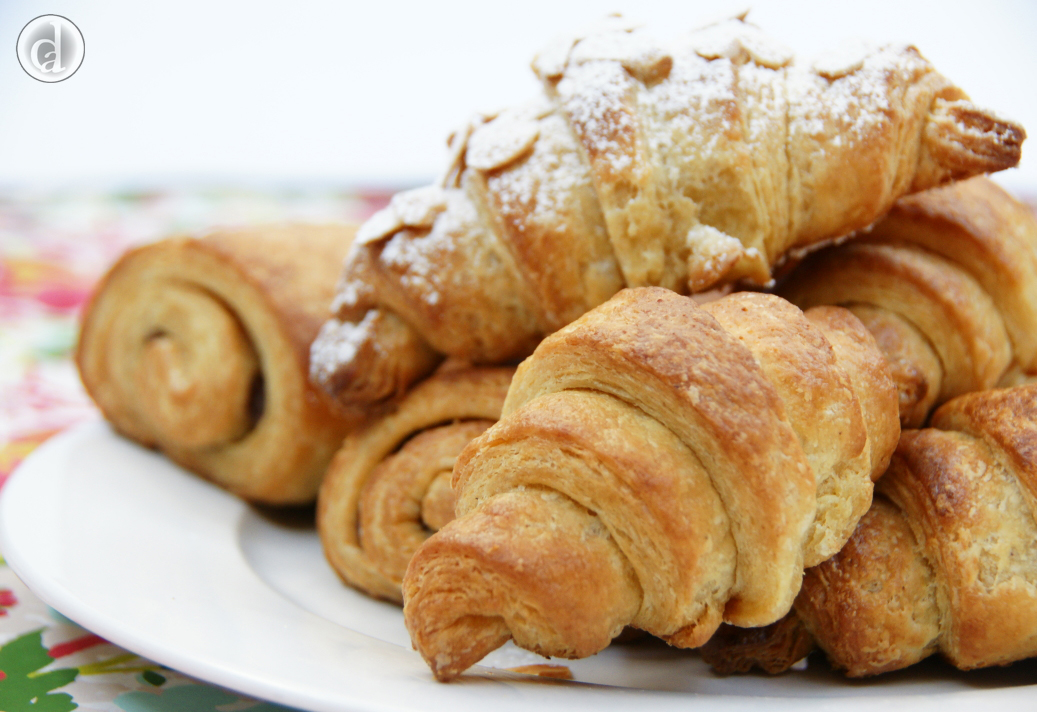 Bake the croissants for ~25 mins at 180 C, turning the tray halfway through baking. The time will depend on your oven & the size of the croissants (& whether they have anything in them).