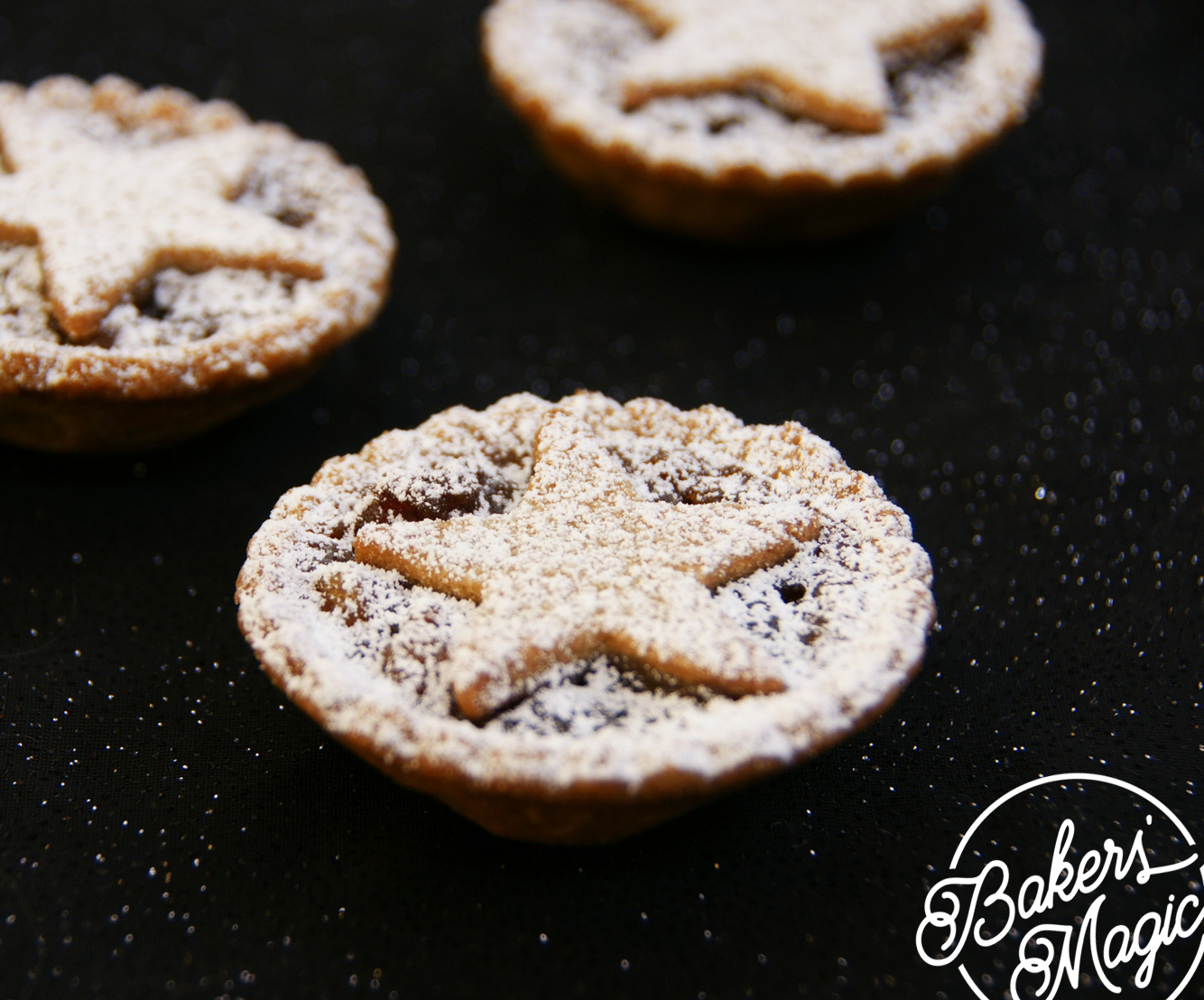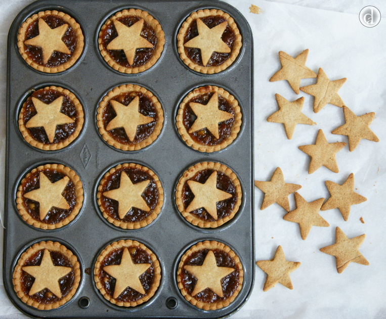Bring out of the oven, transfer pan & tray to a cooling rack, spoon some of the fruit mince into the tart cases & top with a star. Transfer back to the oven & bake for ~10 mins. The actual baking time will depend on your oven & the thickness of the pastry.