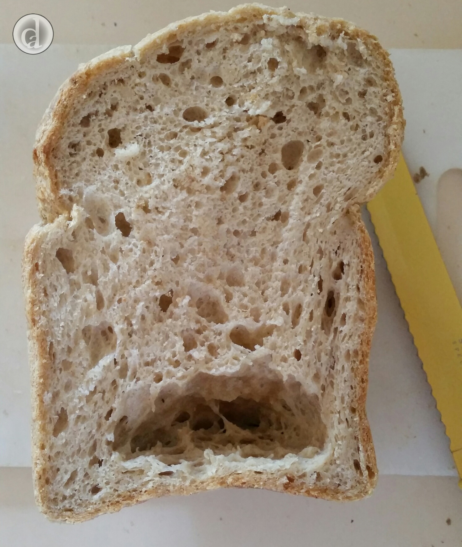 What happens if you do neither? (and use 1/2 the amount of yeast, don't mix it well, put too much of the dough in a baking tin & don't prove it for as long as it should). I seriously wanted holes to form.