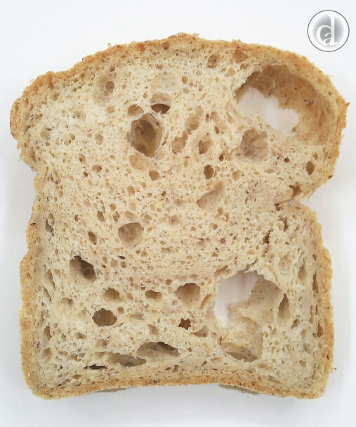 The size & number of holes increase with increasing hydration percentages. Care needs to be taken when baking breads with greater than 140% hydration (this equates to 630 ml of water per 450 g of Bakers' Magic Gluten free flour). Hydration percentages are discussed in the section on Water.