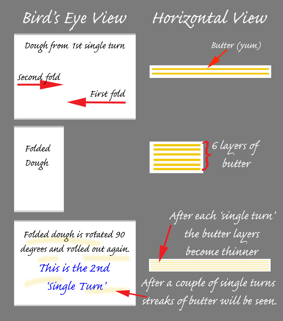 The following diagrams show the laminating process including how the butter layers form.