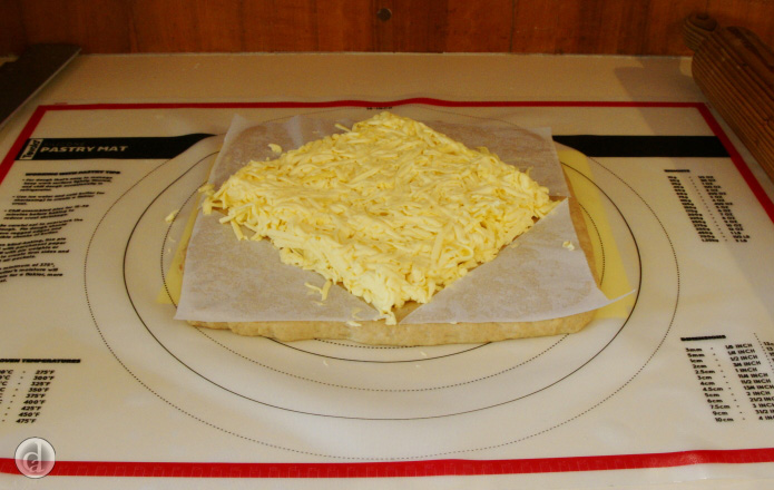 Grating the butter over the dough - this method is used for Fabulous Flaky Pastry, Danish Pastry, Almond & Chocolate Croissants and Sourdough Croissants.