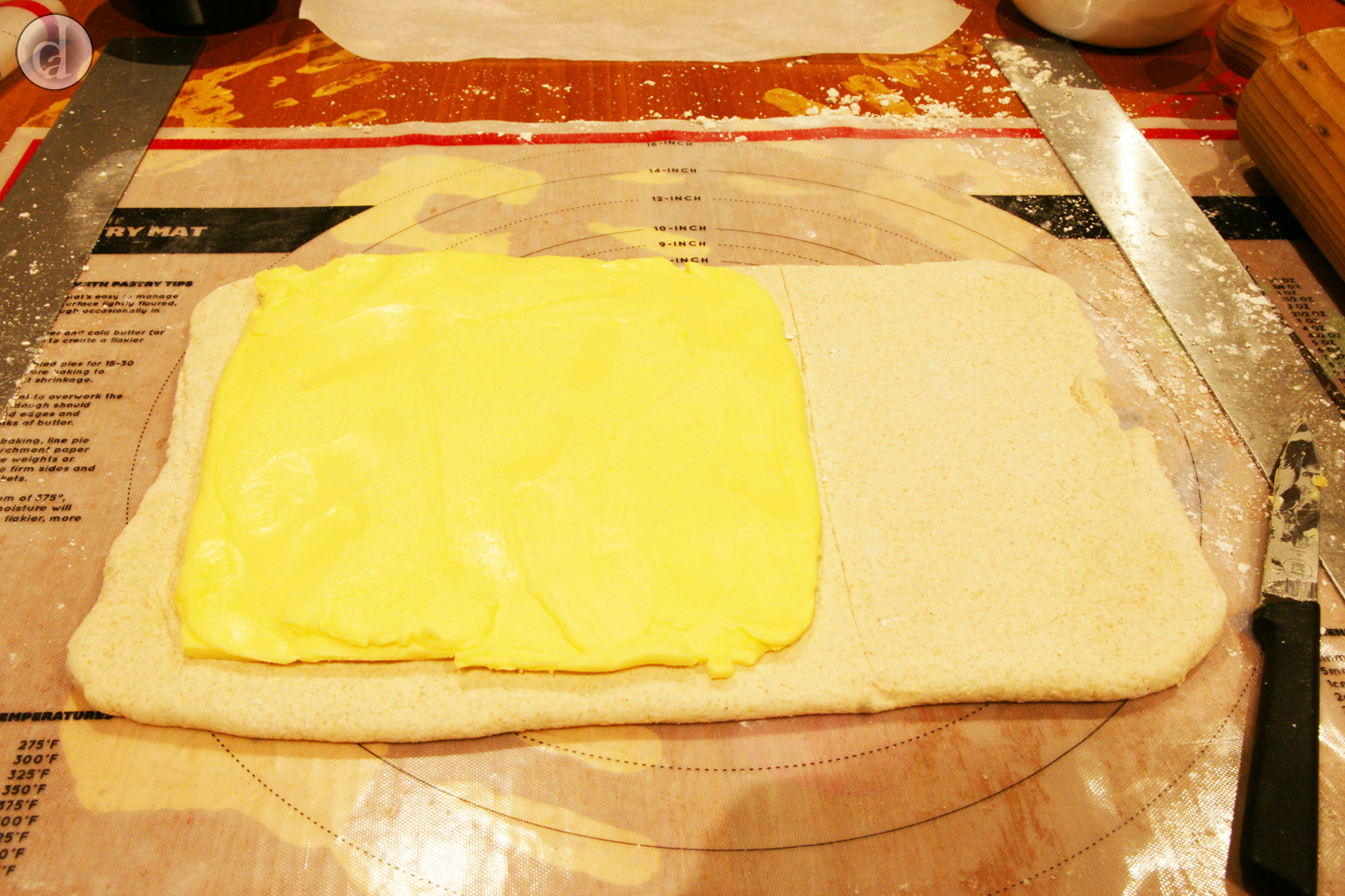 Preparation of dough - adding the butter 'block'